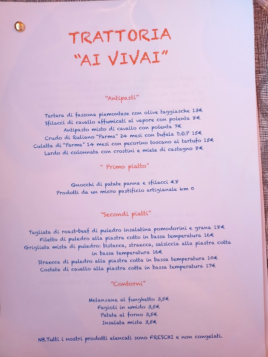 Trattoria Ai Vivai specialita carne di cavallo e altro Menu